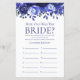 Esta linda floral azul Quantos Anos a Noiva? A folha de chá de panela é elegante e encantadora - perfeita para qualquer jardim, botânica, rústica, romântica, floral, formal ou casamento vintage. Sua combinação requintada de rosas azuis graciosos e de verde sabedoria é fluida, delicada e bonita. Este jogo fácil e divertido traz muitas risadas a qualquer chá! Peça a familiares e amigos que lhe enviem fotos da noiva em diferentes idades e as façam imprimir. Numerá-los e colocá-los perto destas folhas de jogo. Basta dar uma folha a cada convidado (não se esqueça das canetas) e deixar a competição começar! Ficará surpreso com quantas pessoas conhecem realmente a idade da noiva. Em segundos você pode ver como sua folha de jogo ficará. Basta selecionar Personalizar este Modelo e digitar o nome da noiva.