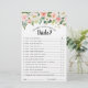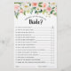 Cartão de chá de panela botânico floral Elegante Blush cor-de-rosa / primavera de pêssego "Quão bem você conhece a noiva?" com um buquê de rosas de aquarela pastel macia, peonias e hífenes em tons de rosa-pincel, pêssego e creme com folhas botânicas verdes e folhas de eucalipto. Uma escolha moderna de design, perfeita para primavera e sábio de verão, matrizes cor-de-rosa. Por favor, encontre mais designs e variações na minha loja de "blisswedingpaperie". E fique à vontade para me contactar para mais personalizações ou itens correspondentes.