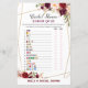 Burgundy Florals Jogo do Chá de panela IMPRESSO, Jogo do Chá de casamento