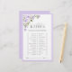 Você está procurando o jogo de chá de panela perfeito que trará muitos risos e diversão? Não olhe mais! O Jogo da Lavanda Floral Elegante Lilac está aqui para fazer sua festa planejar uma brisa. Este jogo apresenta bonito florais de cor d'água rosa, tema de cor de lavanda lilás, caligrafia escrita à mão e tipografia sorif elegante. É perfeito para chás de panela, festas de noivado e chás de fraldas! Prepare-se para muitas risadas - garantido! Que este belo jogo faça parte de sua celebração especial para que você possa fazer memórias que durarão uma vida inteira. Veja aqui toda a suíte: https://www.zazzle.com/collections/elegant_lilac_lavender_floral_bridal_shower-119730120254921497 Entre em contato com o designer para obter produtos correspondentes. Copyright Anastasia Surridge for Elegant Invites. Todos os direitos reservados.