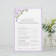 Você está procurando o jogo de chá de panela perfeito que trará muitos risos e diversão? Não olhe mais! O Elegante Chá de panela Floral da Lavanda Lilac ''o que o noivo disse'' Jogo está aqui para fazer sua festa planejar uma brisa. Este jogo apresenta bonito florais de cor d'água rosa, tema de cor de lavanda lilás, caligrafia escrita à mão e tipografia sorif elegante. É perfeito para chás de panela e festas de noivado! Prepare-se para muitas risadas - garantido! Que este belo jogo faça parte de sua celebração especial para que você possa fazer memórias que durarão uma vida inteira. Veja aqui toda a suíte: https://www.zazzle.com/collections/elegant_lilac_lavender_floral_bridal_shower-119730120254921497 Entre em contato com o designer para obter produtos correspondentes. Copyright Anastasia Surridge for Elegant Invites. Todos os direitos reservados.