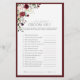 Um jogo moderno e elegante de chá de panela, "o que o noivo disse", com um buquê de flores burgundy e rosa pálidas e verde botânico, bordado num vermelho rico e ensurado. Personalize suas perguntas em preto suave, acentuado com uma bela caligrafia feita à mão moderna. Parte de uma suíte coordenada. Ver suite aqui: https://www.zazzle.com/collections/elegant_burgundy_floral_watercolor_bridal_shower-119280454460170395 Contacte o designer para produtos correspondentes. Copyright Anastasia Surridge for Elegant Invites, todos os direitos reservados.