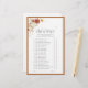 Jogo moderno e elegante de chá de panela "Adivinha quem", com buquê floral de cor d'água de tons tensos, quentes e neutros de blush, branco, amarelo marigold e siena queimada, bordado em uma laranja queimada por crosta. Personalize suas perguntas em preto suave, acentuado com uma bela caligrafia feita à mão moderna. Parte de uma suíte coordenada. Ver suite aqui: https://www.zazzle.com/collections/elegant_orange_watercolor_floral_bridal_shower-119388823689132589 Contacte o designer para produtos correspondentes. Copyright Anastasia Surridge for Elegant Invites, todos os direitos reservados.
