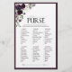 Um jogo moderno e elegante, "What's in Your Purse", com um buquê floral de rosas de cor aquosa, em tons de roxo de ameixa, com folhas botânicas de eucalipto verdes e esbranquiçadas, e bordado em roxo de ameixa. Personalize suas respostas em preto, acentuado com uma bela caligrafia escrita à mão. Parte de uma suíte coordenada. Ver suite aqui: https://www.zazzle.com/collections/plum_purple_watercolor_floral_bridal_shower-119250449992466290 Contacte o designer para produtos correspondentes. Copyright Anastasia Surridge for Elegant Invites, todos os direitos reservados.