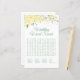 Esta bela folha de chá de casamento floral amarela de Busca do Word é elegante e encantadora - perfeita para qualquer jardim, botânica, rústica, romântica, floral, formal ou casamento vintage. Sua combinação requintada de rosas amarelas graciosas, flores silvestres e verde sábia é florida, delicada e bela. A dota dourada adiciona um toque de diversão e capricho. Este jogo fácil e divertido traz muitas risadas a qualquer chá de panela! Basta dar uma folha a cada convidado (não se esqueça das canetas), ajustar o temporizador do seu telefone para 5 minutos e deixar a competição começar! Ficará surpreso com quantas palavras as pessoas podem encontrar. É sempre divertido ver quem pode concluir o jogo primeiro.