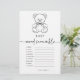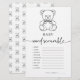 Um jogo sofisticado, simples e elegante, "Bebê word scramble", desenhado para um ursinho de peluche chamado chá do bebê, adorado com um charmoso ursinho desenhado à mão com o arco fofo. Envolva seus hóspedes com este jogo delicioso, perfeito para adicionar diversão e entusiasmo à sua celebração enquanto cria memórias queridas. Respostas: 1. fralda 2. Bocal 3. Pacificador 4. Fórmula 5. gravidez 7. Cisterna 8. cadeirinha 9. frasco 10. viveiro