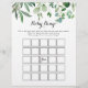 Este jogo verde de chá de bingo de folhagem de eucalipto é perfeito para um chá de fraldas tropical. O design apresenta lindas folhas verdes de eucalipto, pintadas à mão, reunidas em buquês elegantes para embelezar seu evento.