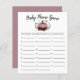 Cartão "baby name game" do tema da abóbora branca com ilustração de uma abóbora rosa com falso brilho dourado. Os textos são editáveis. Um jogo perfeito para jogar durante o chá. aos hóspedes para anotar nomes de bebês que começam com cada alfabeto. Quem termina todos os alfabetos primeiro ganha!