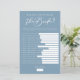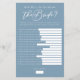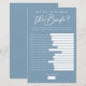 Um jogo de chá de noiva azul poeira chique Quão Bem Você Conhece a Noiva para um evento de verão à beira-mar. Peça essas folhas de papel azul cinza claro para um divertido jogo de trivia da noiva com as amigas. Um jogo divertido de despedida de solteira com uma paleta de cores minimalista.