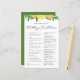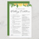 Por que fazemos isso? Adicione este cartão de jogo de Tradição de Casamento Festivo e Divertido ao seu evento. Apresenta a terra aquosa de limões, laranjas e verde com uma escrita química. Personalize adicionando textos na parte traseira da placa. Este jogo de Tradição de Casamento é perfeito para jogos de chá de panela e jogos de chá de casamento de verão.