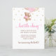 Urso De Água, Rosa E Balões Dourados, Garrafa De Chá de fraldas, Bebê! Poster de jogo. Design apresenta um esquema de texto elegante e moderno. Para fazer alterações avançadas, selecione a opção "Clique para personalizar mais".