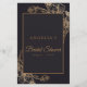 Jogo de chuva de noiva elegante e chique com flores e folhas douradas e fonte de texto com escrita manuscrita elegante em um fundo preto. Personalize com suas próprias informações. Este item faz parte de uma bela coleção de casamento com tudo o que você precisa para o seu grande dia.
