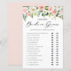 Adivinhe quem disse. Foi a noiva ou o noivo? | Adicione este cartão de jogo He Said She Said divertido e alegre para o seu evento de chuva de noiva. Ele apresenta uma guirlanda floral em aquarela com rosas rosa e brancas, peônias e dálias com sotaques de folhagens. Personalize adicionando suas perguntas. Este cartão de jogo de adivinhação de chuva de noiva floral é perfeito para chuvas de noiva de primavera e celebrações de casamento.