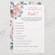 Este cartão de jogo de chá de noiva é Quão bem você conhece a Noiva? Tem 10 perguntas para os jogadores responderem. O design apresenta um design floral de aquarela com flores rosa poento e folhas de eucalipto. Personalize o verso dos cartões com o nome da noiva. Produtos correspondentes disponíveis.