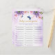 Dê um toque de animação e expectativa ao seu chá de bebê com nossas folhas de papel do jogo "Borboleta Roxa" para adivinhar o nome do bebê. Este jogo encantador fará com que seus convidados adivinhem e prevejam o nome perfeito para o próximo bebê. O delicado design de borboleta roxa complementa perfeitamente o tema do seu chá de bebê, adicionando um toque de charme às festividades. Observe enquanto seus entes queridos criam sugestões de nomes criativos e carinhosos, adicionando um elemento divertido e sincero à celebração. Encomende hoje mesmo nossas folhas do jogo "Borboleta Roxa" para adivinhar o nome do bebê e faça do seu chá de bebê uma experiência envolvente e memorável para todos os envolvidos.
