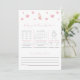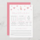Faça suas predições de bebê e dê aos novos pais seu melhor conselho no chá de fraldas do namorados com um jogo de chá de fraldas de Dia de os namorados e coelho! Nossas predições de bebês e modelos de jogos de conselhos são a maneira perfeita de celebrar o novo bebê no caminho com uma divertida atividade de chá de fraldas no doce chá de fraldas de namorados. O doce design namorados de chás de fraldas de e conselhos da DAVINA apresenta um fundo branco com corações aquosos em uma forma texturizada de rosa junto com um coelhinho segurando um coração, e uma combinação de fontes serif e script em rosa e cinza. Este modelo de jogos de previsão e aconselhamento para bebês é a escolha perfeita para um jogo de chá de fraldas para bebês. Inclui suposições para: mês de nascimento, dia de nascimento, hora de nascimento, nome do bebê, sexo do bebê, cor do cabelo e dos olhos, aparência, peso e comprimento, bem como conselhos para os pais serem.
