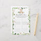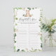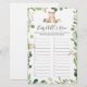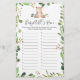 O cartão de jogo de corrida do chá de fraldas ABC apresenta uma ilustração de urso de aquarela e verde-aquarela eucalyptus garland e uma elegante fonte de estilo manuscrito.