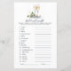 Adicione um toque de diversão ao seu chá de noiva com este cartão de jogo de "Palavras Desembaralhadas de Noiva" elegante. Com um desenho sofisticado de taça de champanhe e flores de parreira, este jogo desafia os convidados a desembaralhar palavras relacionadas ao casamento em uma corrida contra o tempo. Perfeito para entreter os convidados e criar memórias alegres. Totalmente personalizável para se adequar ao tema do seu chá de noiva.