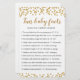 Adquira este jogo e desfrute de um cartão de dados de alta qualidade, de confete em ouro, para o seu evento! Atividades de chá de fraldas! RESPOSTAS: 1.- 8, 2.- 74, 3. - 69,4. - 3, 5. - 7.5, 6. -20, 7. - escutas, 8. - 300, 9. - 6, 10. - 3000, 11. - 350, 12. - 16