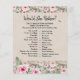Jogo "Ela Preferiria? TENTE IGUALAR SUAS RESPOSTAS COM AS DA MÃE" para chá de bebê com adoráveis rosas aquareladas.