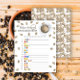 Café de cor aquosa, café e padrão de feijão. Chá de fraldas de café. Chá de fraldas temido com café. Texto com anel de café e com café e xícara de café.
