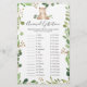 O cartão de jogo de gestação de animais com o tema do urso chá de fraldas apresenta uma ilustração de urso com aquarela e verde-aquarela eucalyptus garland e uma elegante letra de estilo manuscrito.