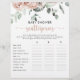 Este jogo clássico de escórias de chá de fraldas rosa rosa rosa rosa é uma atividade divertida para um chá de fraldas rústico. O design apresenta elegantes rosas rosa poeirentas e poeirentas e folhagem verde, perfeitamente reunidas em belos buquês.