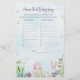 Desafie os hóspedes com esta divertida carta de jogo "Name Aquela Canção Bebê", definida num mundo subaquático sonhador com cores pastel oceano e sotaques pérolas — uma reviravolta musical para o seu chá.