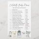 Os animais árcticos do inverno têm o tema celebridade do chá de fraldas e o cartão de jogos com nomes para bebês apresenta uma ilustração de animais árticos a aquarela e verde-aquarela eucalipto garland e uma elegante letra de estilo manuscrito.