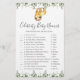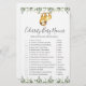 O cartão de jogo de nomes de bebês para celebridades de chás de fraldas com temas lentos apresenta uma ilustração de preguiça de cor d'água e verde-aquarela eucalipto garland e uma elegante fonte de estilo manuscrito.