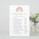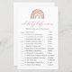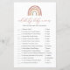 O cartão de jogos da celebridade do chá de fraldas do Rainbow apresenta uma ilustração do arco-íris a cores-d'água e uma elegante fonte de estilo manuscrito.