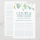 Esta folha de jogo de nomes de casal LGBTQ de eucalipto botânico trará muita diversão e risadas para o seu chá de casamento! A página é ao mesmo tempo elegante e moderna. Seu belo design com uma peça de eucalipto em estilo aquarela contemporâneo é perfeito para qualquer casamento. Para personalizar este jogo, basta selecionar Personalizar este modelo e digitar os nomes do casal feliz.