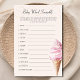 Folha de jogos do Chá de fraldas Baby Word Scramble, com instruções de jogo editáveis - atividade de quebra-cabeça de palavra divertida para jogar no seu chá de fraldas bonito. Cartão de palavras de bebê de chá de fraldas da menina com tema de sorvete bonito com ilustração aquosa de sorvete rosa em um cone waffle. A lista de palavras neste cartão está relacionada com bebês e eles estão embaralhados. Os hóspedes vão competir quem pode desembaraçar todos eles primeiro! CHAVE DE RESPOSTA: 1. Leite 2. banco do carro 3.Trabalho 4. Colic 5. livro 6. limpa 7. berço 8. berçário 9. Criança 10. Berço 11. Loção 12. ursinho de pelúcia.