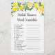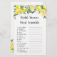 Estas adoráveis Bridal Word Scramble Game Cards são uma forma excelente de se divertir com seu Chá de panela e é garantido que sejam um grande sucesso! Simplesmente passá-los durante o Chá de panela onde os convidados se divertirão desembaraçando as 15 palavras relacionadas ao casamento! A primeira pessoa com as respostas corretas ganha! A chave de resposta está incluída no verso. O design apresenta limões aquosos brilhantes com espadilha verde e folha de ouro suja.