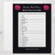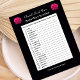 Procurando um jogo divertido de palavras de chá de panela. Esta frase de noiva contém 20 palavras relacionadas ao casamento para os convidados do seu chá se desembaraçarem. Dois buquês de rosas cor-de-rosa aparecem sobre um fundo preto com a palavra "risca" logo abaixo. A coisa excelente sobre este design é que você pode personalizar o design com o nome da noiva! Um jogo de palavras divertidas para um chá de panela ou chá de casamento. Direitos autorais