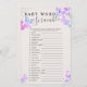 Cartão de jogo de Chá de fraldas de borboleta do Baby Word Scramble com texto editável. A design apresenta uma bonito borda de borboletas em lilás cor-de-rosa e azul com cinza prateada. Se você quiser combinar produtos, navegue na minha coleção de Céus de Borboleta ou me envie uma mensagem para adicionar as modelos de design de que você precisa.
