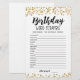Adquira este jogo e desfrute de um cartão de palavra de aniversário de alta qualidade para o seu evento! Desembaralhe as palavras de aniversário! RESPOSTAS: 1-CONVITE, 2-CONFETTI, 3-ARMAZENADO, 4-PINATA, 5-BOLO, 6-ANIVERSÁRIO, 7-PRESENTE, 8-FELIZ, 9-GIFTS, 10-CONVIDADOS, 11-MAGICAL, 12-BALÕES, 13-BANNER, 14-FRIENDS, 15-AMOR, Dourado Confetti design.