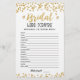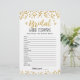 Adquira este jogo e desfrute de uma placa Bridal Word de alta qualidade para o seu evento! Desembaralhe as palavras do casamento! RESPOSTAS: 1-GIFTS, 2-RING, 3-BRIDE, 4-WEDDING, 5-CONVIDADOS, 6-CAKE, 7-GROOM, 8-BRIDESMAID, 9-VESTIDO, 10-CHAPEL, 11-UTILIZADORES, 12-CASAMENTO, 13-HONEYMOON, 14-VOWS, 15 O MELHOR HOMEM Dourado Confetti design.
