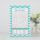 Procurando um jogo de chá de panela em turquesa? O olhar acabou. Esta festa divertida do chá de panela apresenta as listras de gíria azul-turquesa e branco zigzag em segundo plano para o jogo. O jogo é procurar palavras de casamento. Você pode colocar o nome da noiva em cima para criar um jogo de festa personalizado em turquesa. Direitos autorais