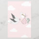 A design apresenta uma doce cegonha desenhada à mão com design de nuvem branca e fluffy. O cabeçalho do script não é editável. Todo o outro texto é totalmente editável. Para personalização mais avançada deste design, basta selecionar o botão "Personalizar" acima.