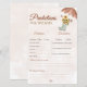 Torne o seu chá de fraldas ainda mais memorável com este Jogo de previsões de Chás de fraldas do Boho April! Apresentando um charmoso design de aquarela de botas de chuva cheias de girassóis, um guarda-chuva macio e borboletas delicadas, este jogo permite aos hóspedes adivinhar a data de chegada do bebê, o peso, a cor do olho e muito mais. Uma adição divertida e interativa a um chá de fraldas teatral, rústico ou primavera, criando manobras doces para os pais serem queridos!