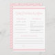 Cartão plano de previsão e conselhos de chá de bebê fofo e feminino com listras rosa e branco e padrão de laços rosa. Este jogo de chá de bebê é perfeito para chás de bebê "É uma Menina".