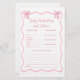 Aprecie os convidados com este Jogo de Predições do Chá de fraldas Coquette de Arco Rosa Personalizado! Um jogo de chá de fraldas perfeito para um tema charmoso de chá de fraldas rosa, esta atividade divertida permite aos hóspedes preverem os detalhes dos bebês. Procurando ideias de jogos de chá de fraldas ou ideias de chá de fraldas rosa? Esta adição de arco é na moda e memorável. Ideal para um tema de chá de fraldas coquete, é a adição mais doce a qualquer celebração de chá de fraldas arco.