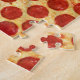 essa fatia felina é colocada em um fundo simulado de pepperoni, para um pequeno desafio extra