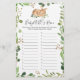 O cartão de jogo de corrida do chá de fraldas ABC apresenta uma ilustração de veados com aquarela e verde-aquarela eucalyptus garland e uma elegante fonte de estilo manuscrito.