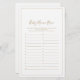 Este jogo minimalista de chá de fraldas dourado, chamado "baby name", é perfeito para um simples chá de fraldas. A design romântica moderna apresenta ouro clássico e tipografia branca emparelhada com uma caligrafia rústica, mas elegante, com estilo voltado para a mão. Personalizável em qualquer cor. Mantenha o design simples e elegante, como está, ou personalize-o adicionando seus próprios gráficos e trabalhos de arte. Personalize a parte de trás do cartão de jogo com o nome da futura mãe e a data do chá.