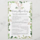 O cartão de teste de natalidade de berçário de chá de fraldas de elefante com tema elefante apresenta uma ilustração elefante de cor d'água e verde-aquarela eucalipto garland e uma elegante fonte de estilo manuscrito.