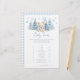 Adicione um toque de elegância ao seu chá festivo de bebê do inverno com o nosso sofisticado jogo "Traços de Bebê". Apresentando um encantador ursinho vestindo arco azul giro, segurando um balão azul, cercado por pinheiros de inverno e flocos de neve e padrão de gingham azul bebê atrás, esta atividade deliciosa é perfeita para entreter seus convidados e criar memórias duradouras. Ideal para adicionar diversão e entusiasmo à sua celebração especial!