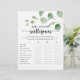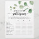 Este delicioso jogo de escórias do chá de fraldas de eucalipto é uma atividade divertida perfeita para um chá de fraldas minimalista. A design apresenta galhos e folhas botânicas elegantes e desenhadas a aquarela e desenhadas à mão.