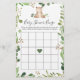 O cartão de jogo bingo de chá de fraldas com tema Bear apresenta uma ilustração de urso de aquarela e verde-aquarela eucalipto garland e uma elegante fonte de estilo manuscrito.